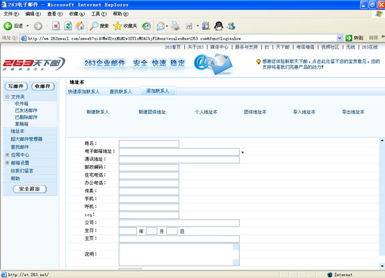 强大的地址本导入功能,方便用户将客户端邮件工具上的联系人,整合到263邮箱的地址本中;